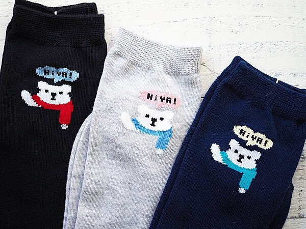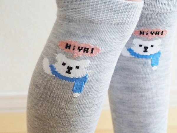 マフラーを巻いたクマがかわいい♪シンプルなハイソックス