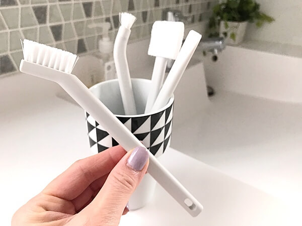 焦げ付きなどこびりついた汚れを取るヘラ、狭い溝の掃除に適した小さなスポンジ、排水口の中など届きにくい奥の方の掃除に適したポイントブラシ。