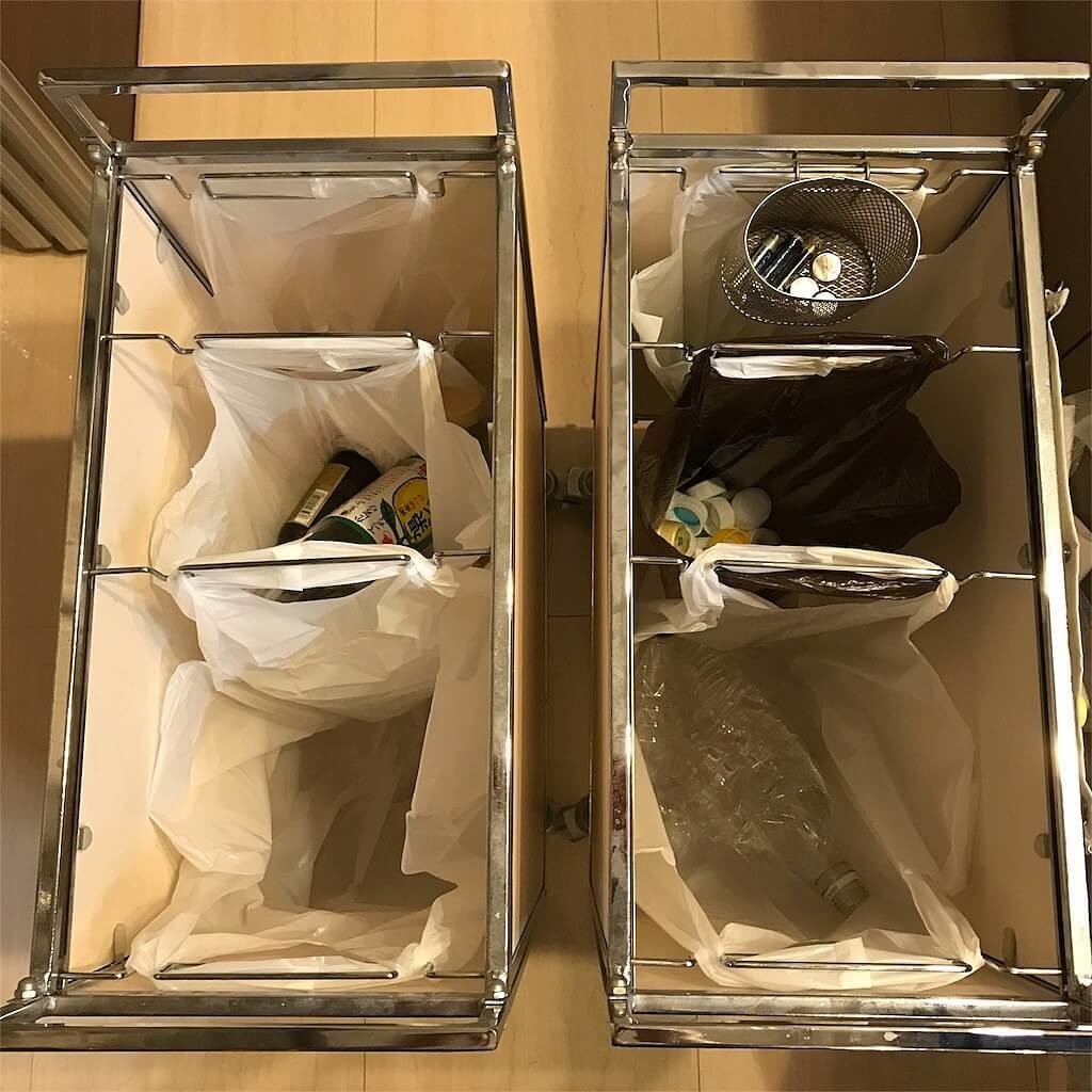 ↑奥にあるのがフタ付きの燃えるゴミ用です。内側にゴミ袋をセットできます。