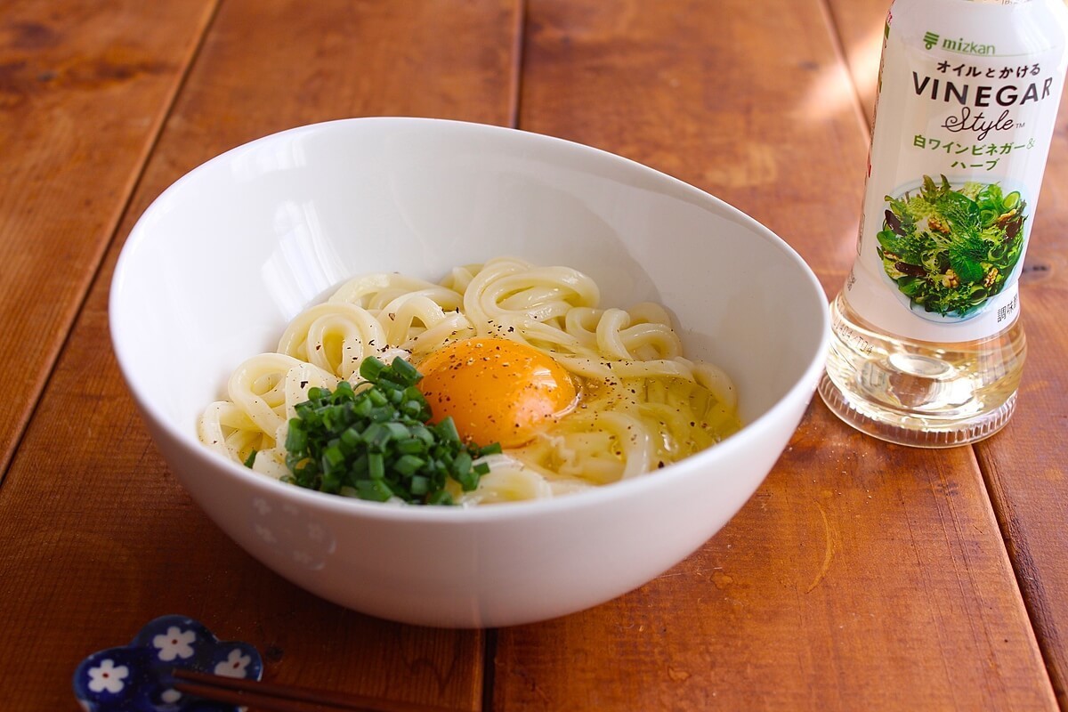 オリーブオイルが揚げ玉の代わりになり、濃厚で洋風、そこにビネガーの爽やかさが感じられる新しいうどんになりました。
