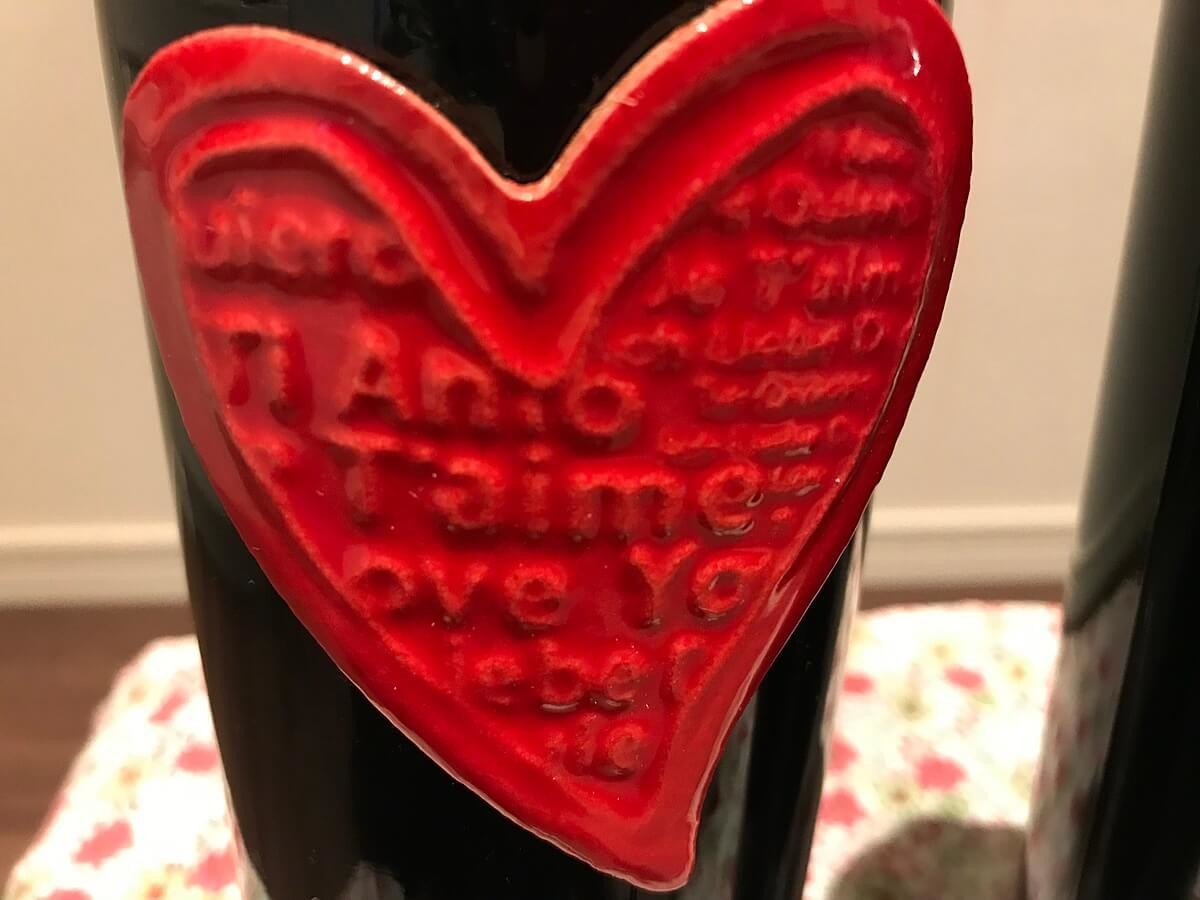 遠目からでもハートマークがはっきりとわかる「エティケ キャンティ ラブコレクション」。なんとハートの部分は、南イタリアの名産である陶器で出来ています。