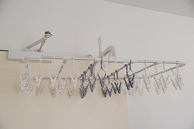 ピンチをひとつひとつ外す手間がなく、ピンチの色によって干し分けも自在。