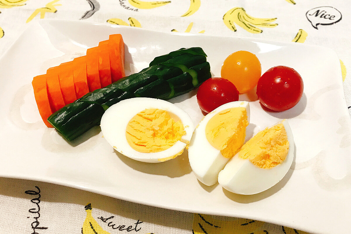 - ゆで卵→殻を取ってそのまま
