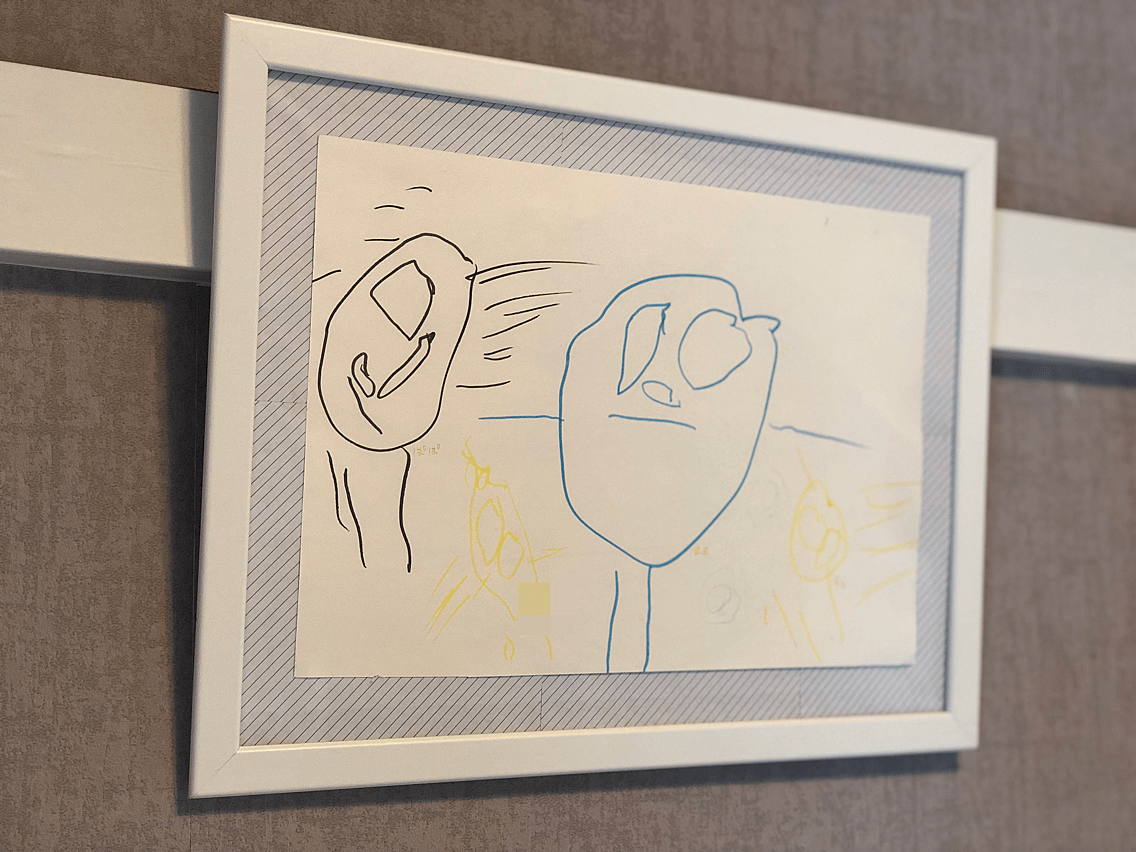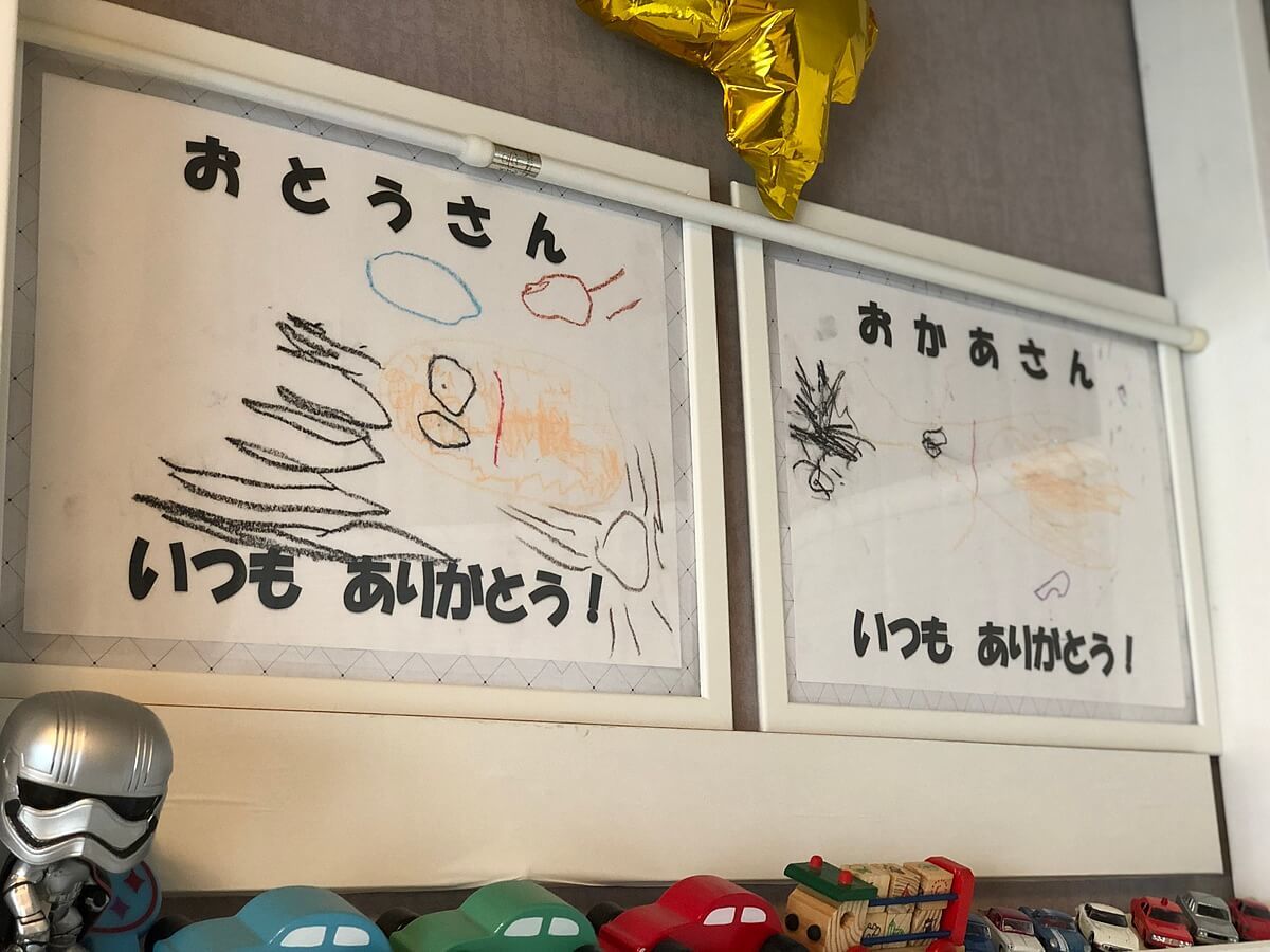 それでも私が手放せなかった物……初めて父の日、母の日に書いてくれた絵や、初めて家族の絵を書いてくれた時の物は飾っています!