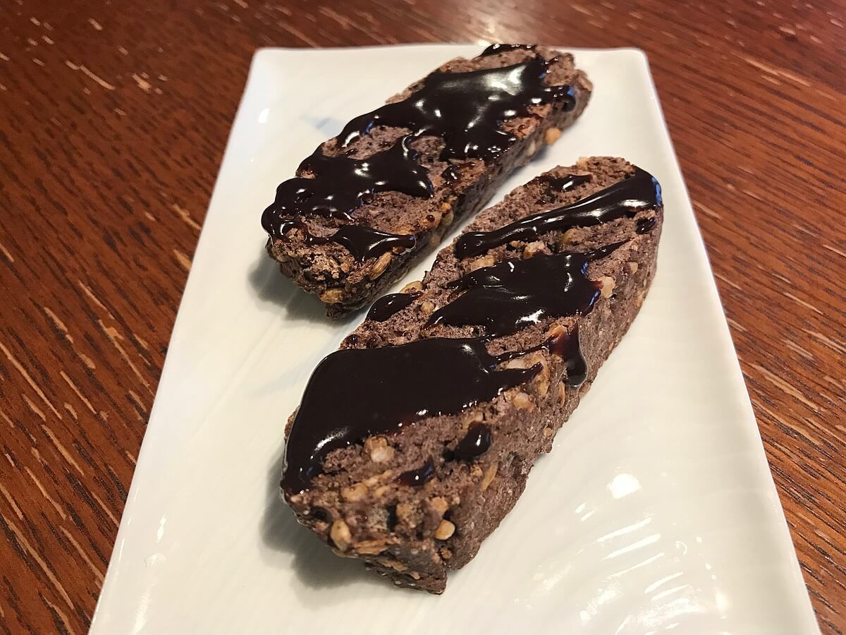 思わずチョコレートをかけてカモフラージュしてしまいました。 臭いわけではないのですが、ふわっと漂うワインの香りというイメージとは違いました。 色もあまり綺麗に出ず、ココア味とあまり変わらないような見た目に。