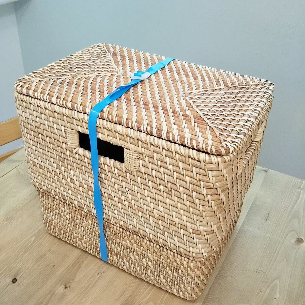 我が家にはカゴが沢山あるので、いくつか積んでバンドでキュっと締めました。