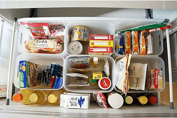 半透明の容器がダイソーの積み重ねボックスです。賞味期限が早いものなど数や残りの量をすぐに把握したいものは、半透明なダイソーの収納ボックスに入れて管理しているとのこと。