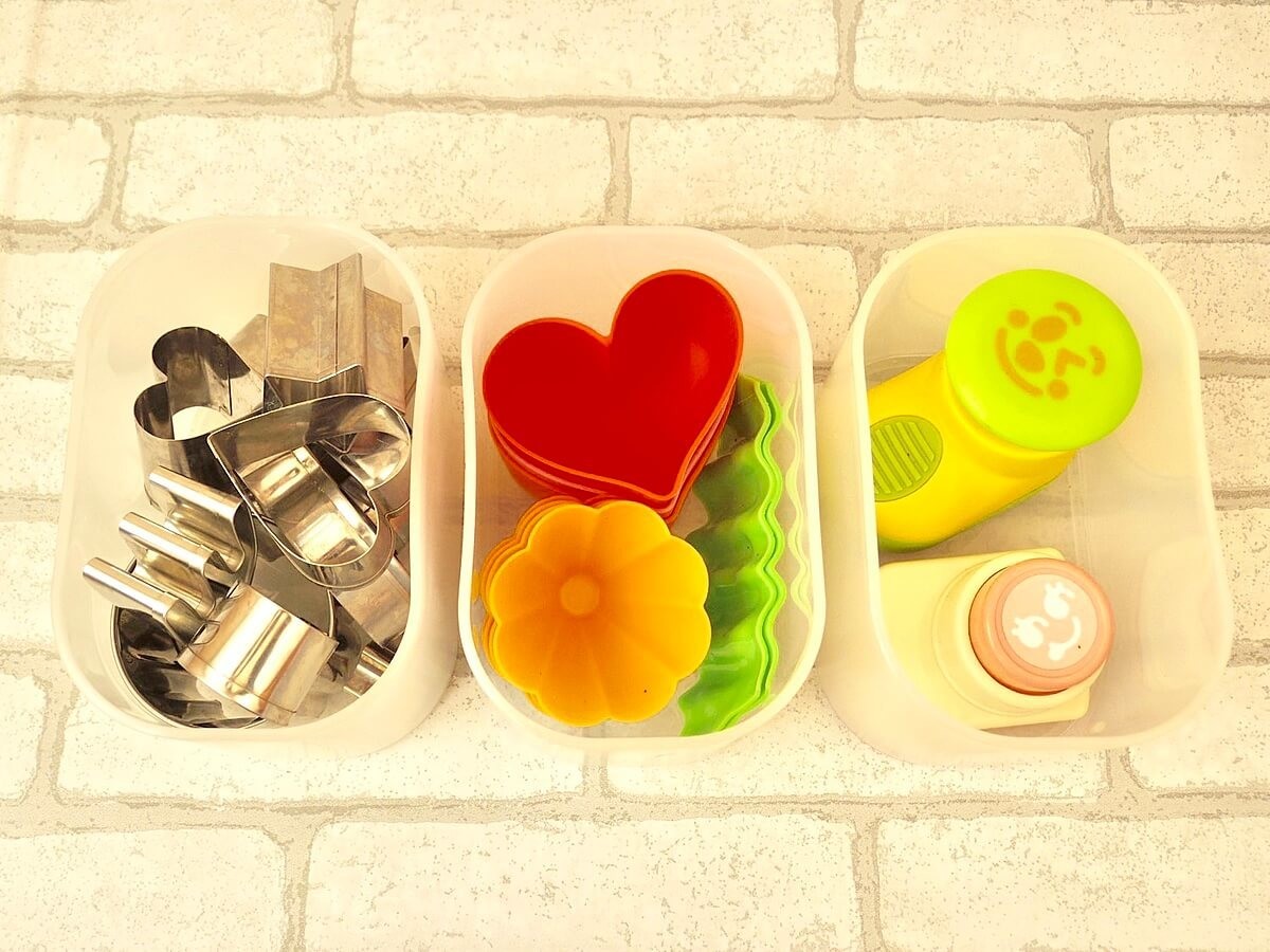 小さい収納ボックスにはお弁当のカップ、抜き型といった小物を収納するのに便利。充電ケーブルやコード類を入れるのにも重宝しています。