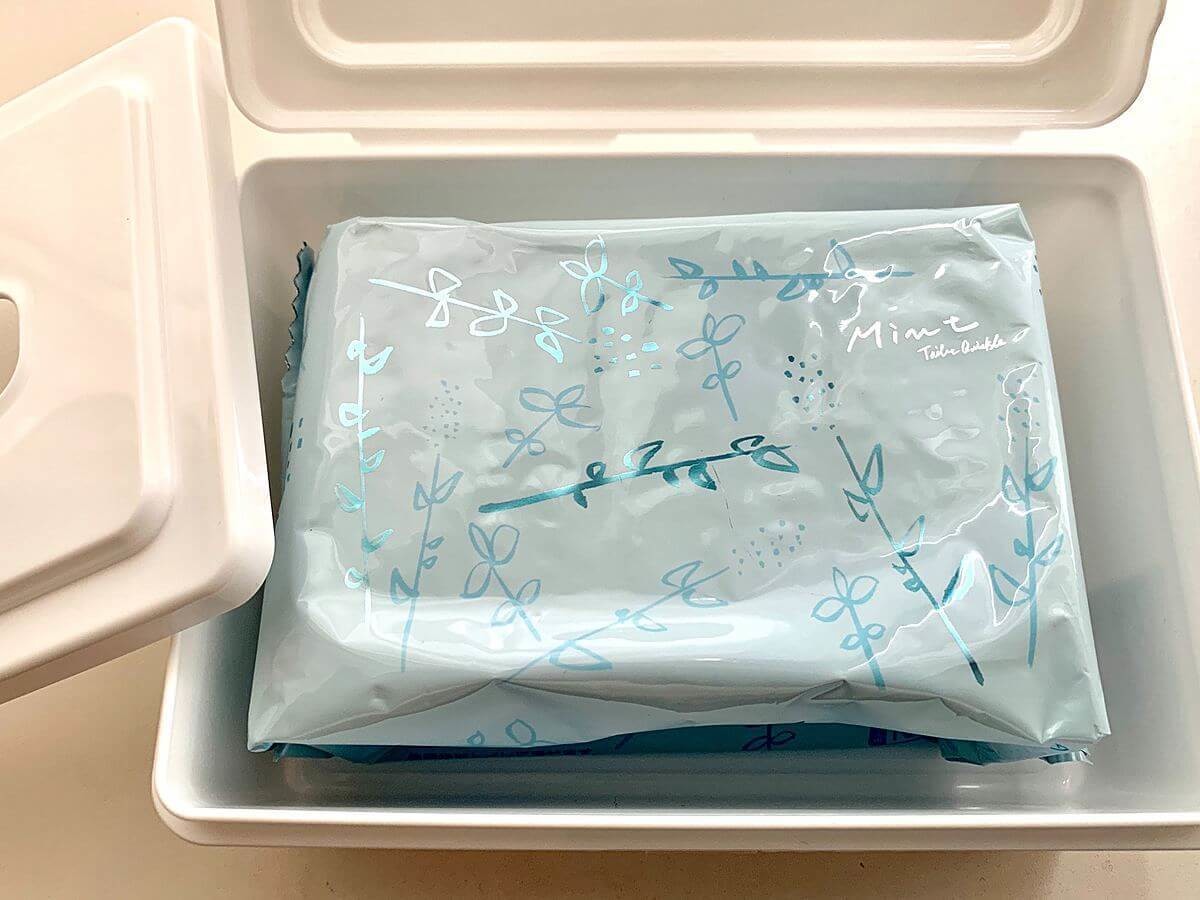 取り出し口からシートをサッと取れて、蓋を閉められるので見た目にもスッキリ!ウェットタイプのシート収納におすすめですよ。