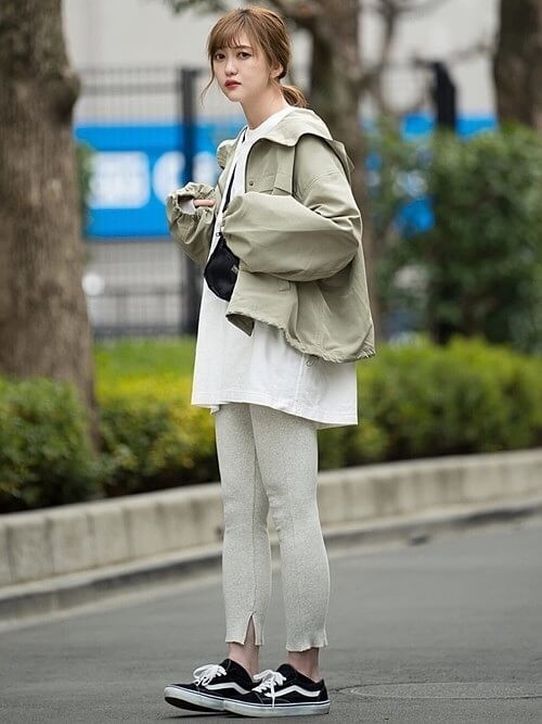 ワンピース風に着こなす、レギンスレイヤードスタイル