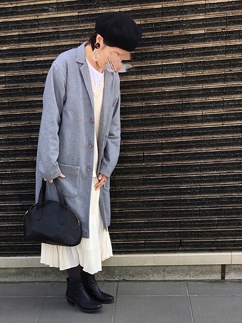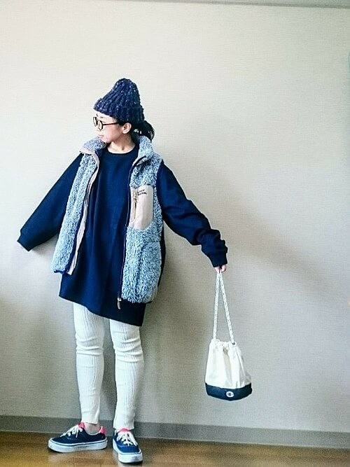 ワンピース感覚で着こなして、GUの白レギンスをレイヤード。 全身をネイビー×ホワイトでまとめて、感度の高い冬マリンスタイルの完成です♪