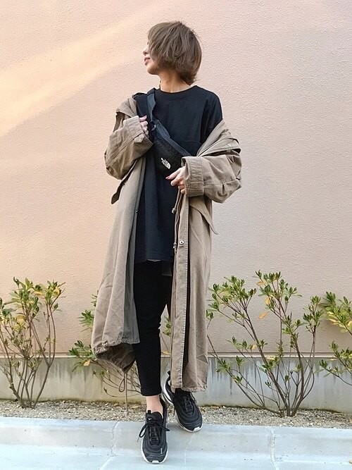 オールブラックも、ビッグシルエットのゆるさで女性らしく
