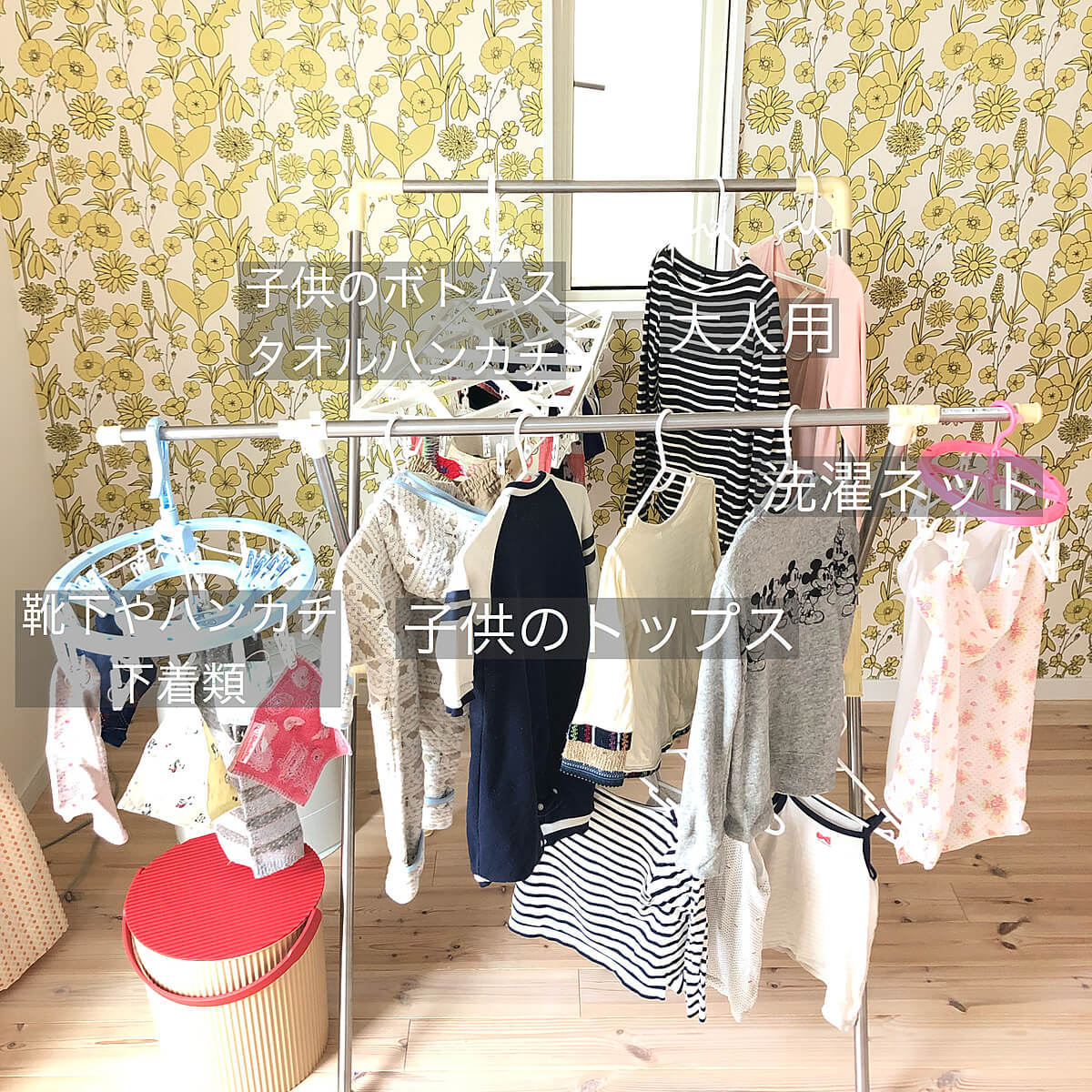 まず、物干しに掛ける段階でざっくりとグループ分けをしながら干します。