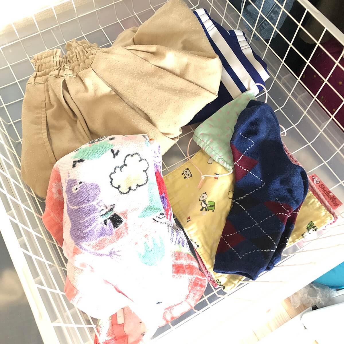 ボトムスと小物類は、乾いたら「一時置きのかご」に移動します。