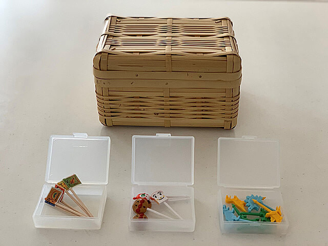 家事の合間にお手製のピックを作ることがあるので、すぐに手が届く場所に置いておきたく、台所のお気に入りの場所に、お気に入りのかごに収めて特別扱いしています。