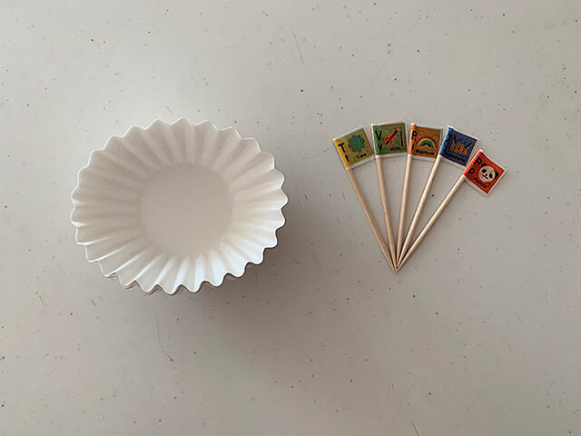 プラスチック製のピックも使いますが、爪楊枝とマスキングテープで手作りしておくと、使い捨てできて、洗う手間が省けるので楽ちんです。