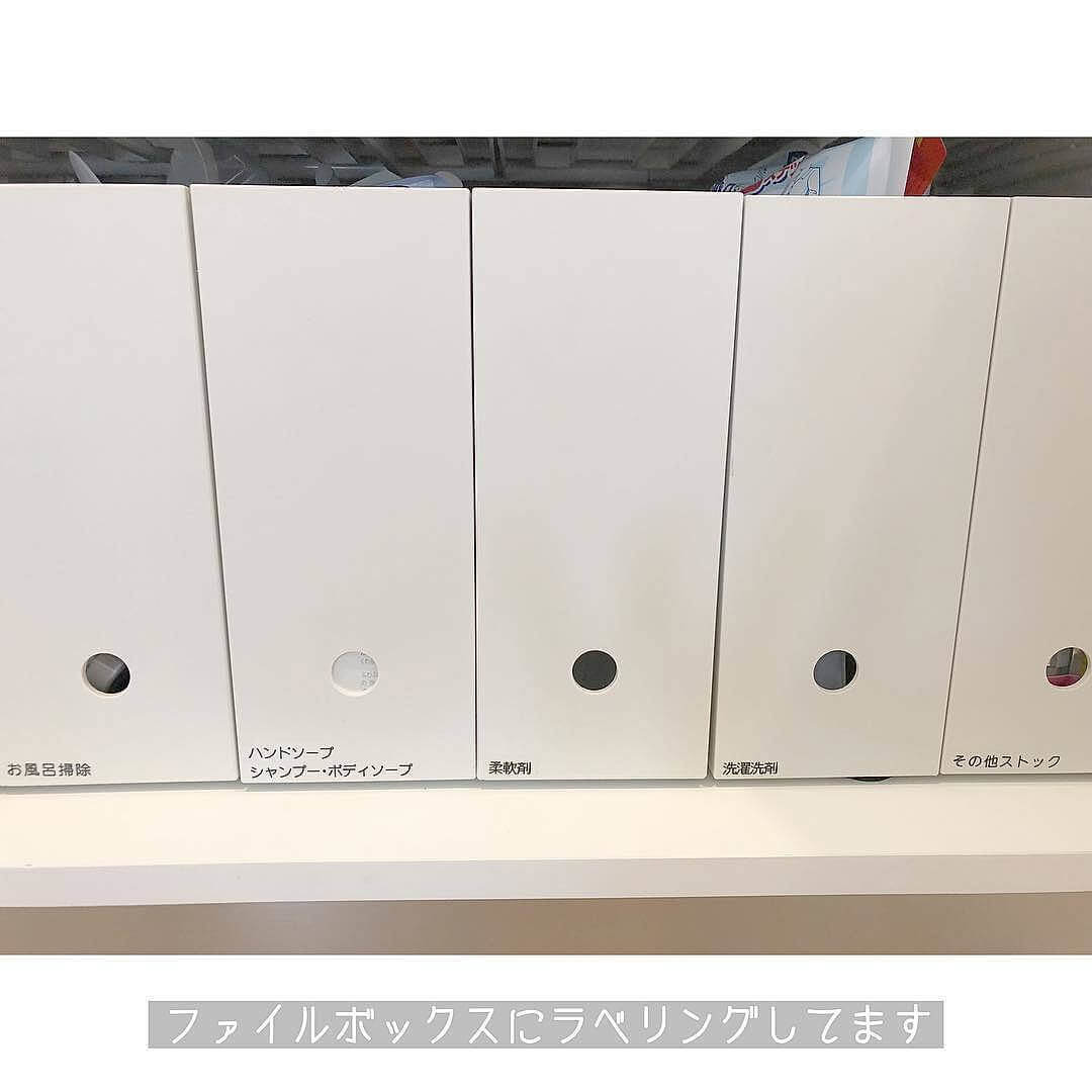 どこに何が入っているか分かりやすく、日用品ストックの在庫管理もしやすくなります。