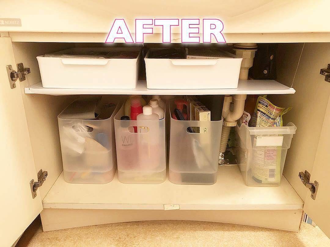 セリアやダイソーなどで買える収納ボックスを組み合わせて使うだけで、劇的に綺麗になりますね!