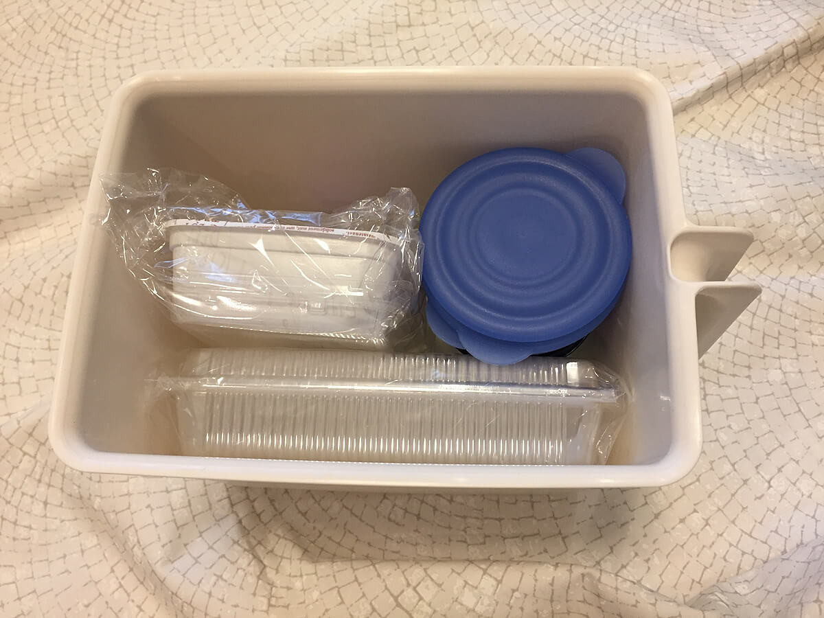 4つ購入したうちの2つには、お弁当箱とパック類を入れました。残りの2つはまだ決めかねていて、いろいろとお試し中です。