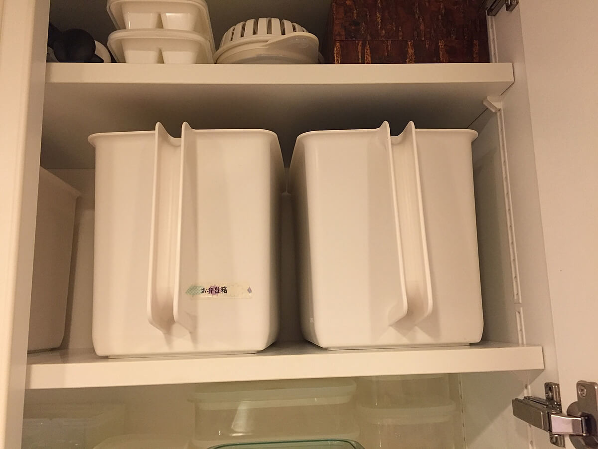 収納アイテムも使わず、パズルのようにタッパーや調理器具を積み重ねて置くだけでした。