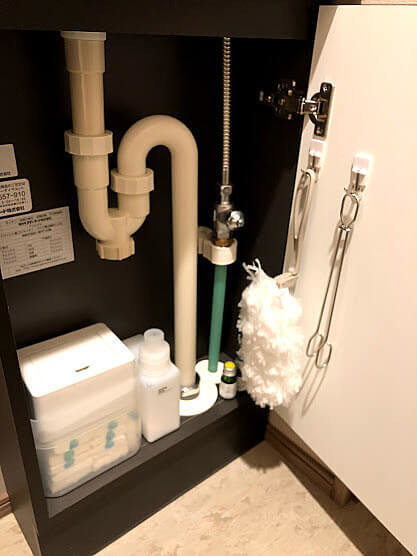 トイレでは、背面上段の吊戸棚と手洗い周りに収納スペースがある場合が多いと思います。