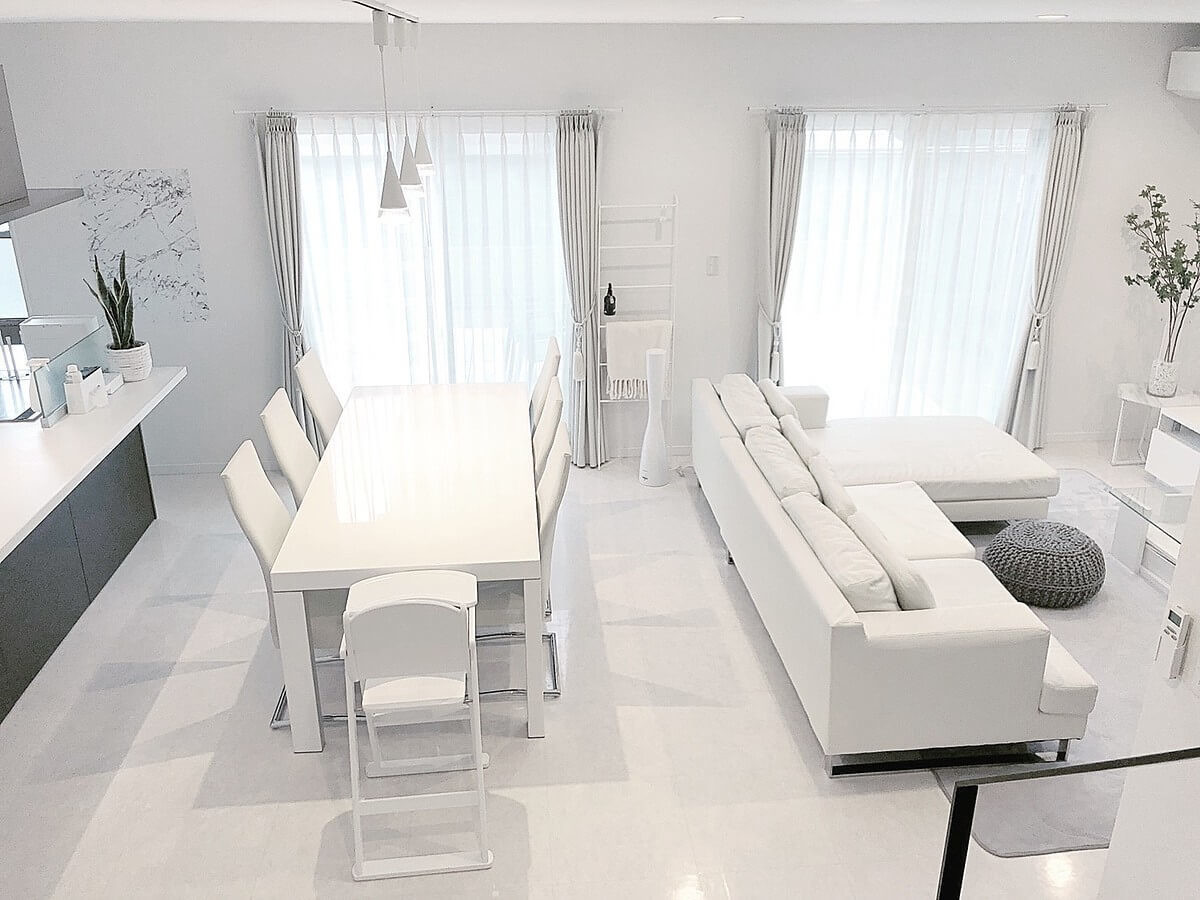 築3年の持ち家は生活感を感じさせない憧れの真っ白な清潔感あふれるお家に時々ブラックとエッジを効かせた#ホワイトインテリアの魅力をご紹介しています。