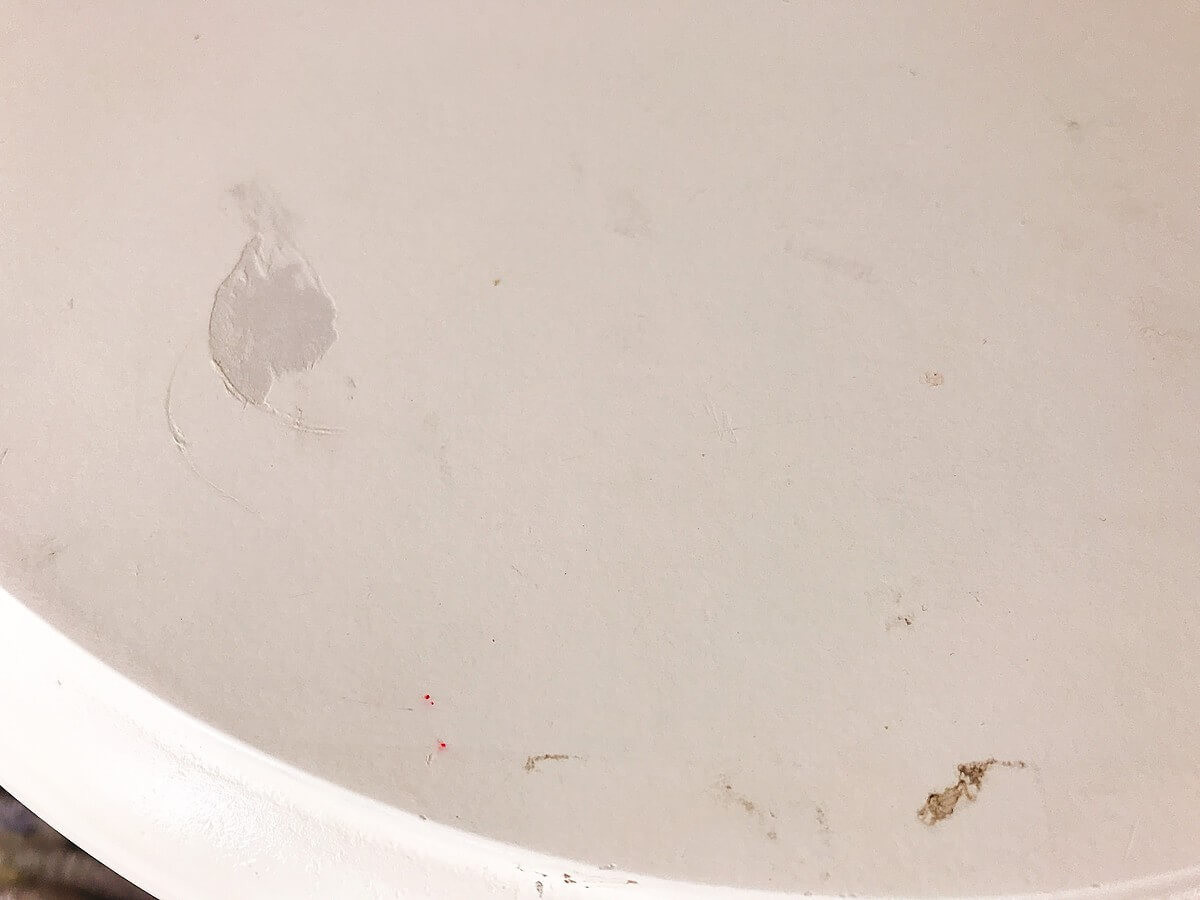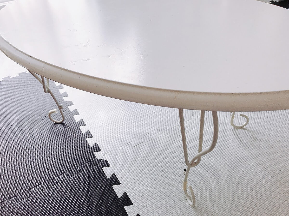 もともと綺麗に塗装されていたこの白いテーブル、一見綺麗そうですが近くで見ると……。