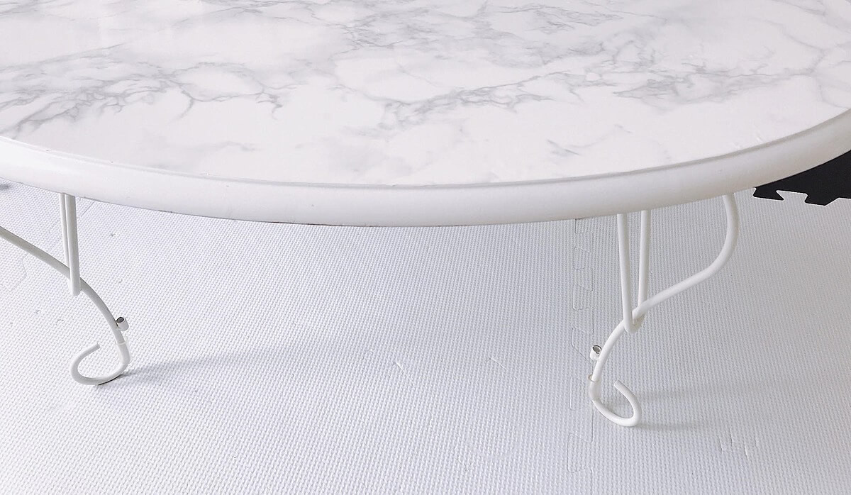 みすぼらしかったテーブルが高級感ある大理石模様の物に生まれ変わりました。しかも100円で!