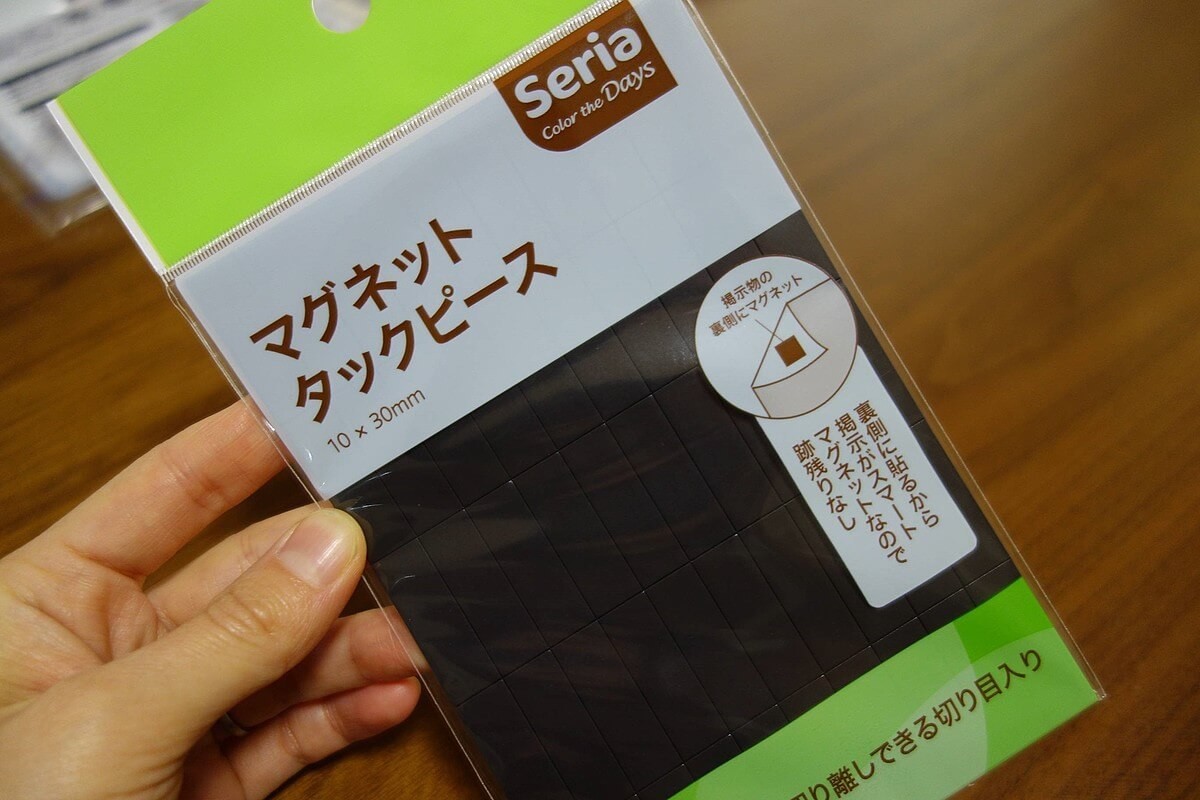 ですが、100均のものってほぼほぼ粘着シールで止めるか、上から磁石で固定するかの2択しかタイプがないのが難点。インテリア好きやシール嫌いな人にとっては若干気になってしまうことも……。