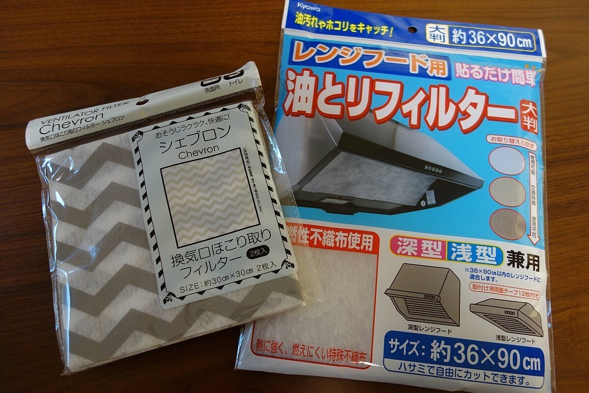 キッチンのレンジフードに付ける油とりフィルターって100均でも手軽に入手できて便利ですよね。