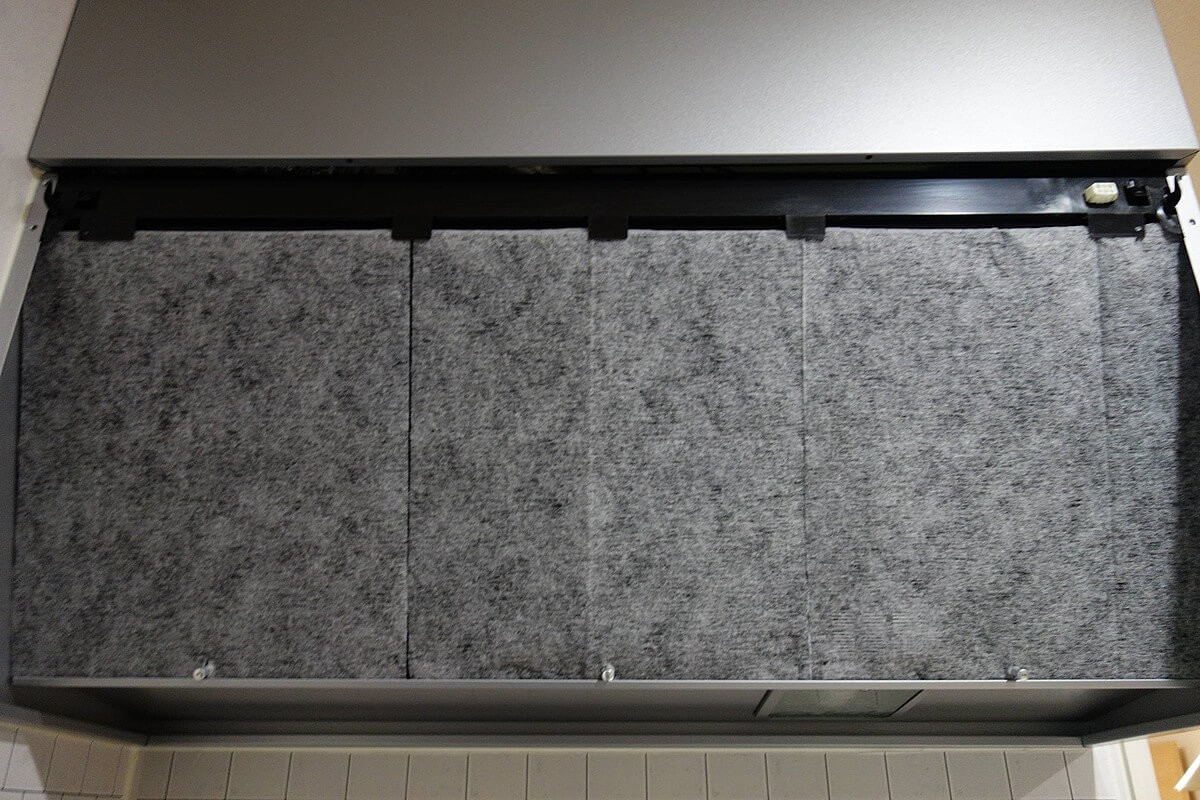 しかし、マグネットタックピースを使えば、レンジフードカバーを汚さずにフィルターが取り付けられるというわけです。