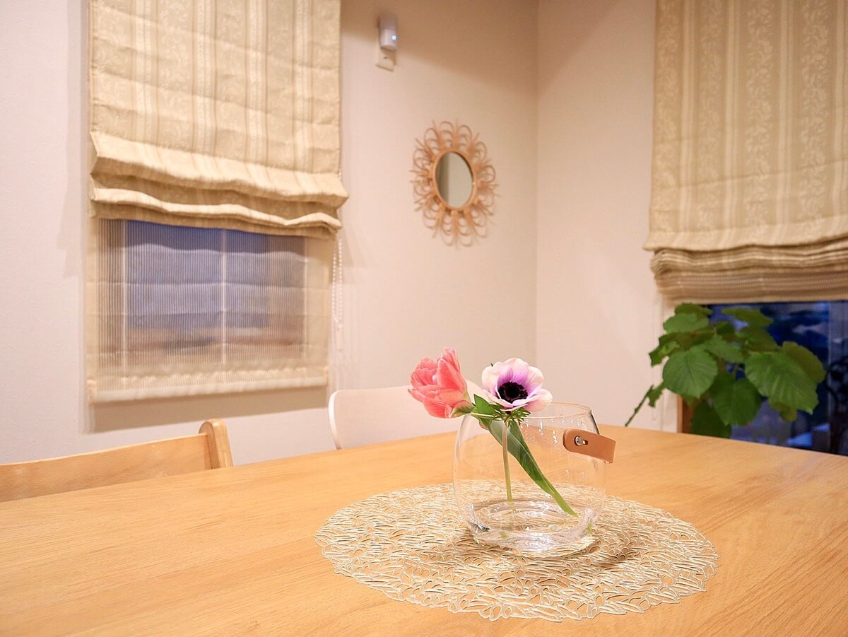 また、少量の花を飾る際にはガラスの縁にかけるように斜めに飾ると飾りやすいです。