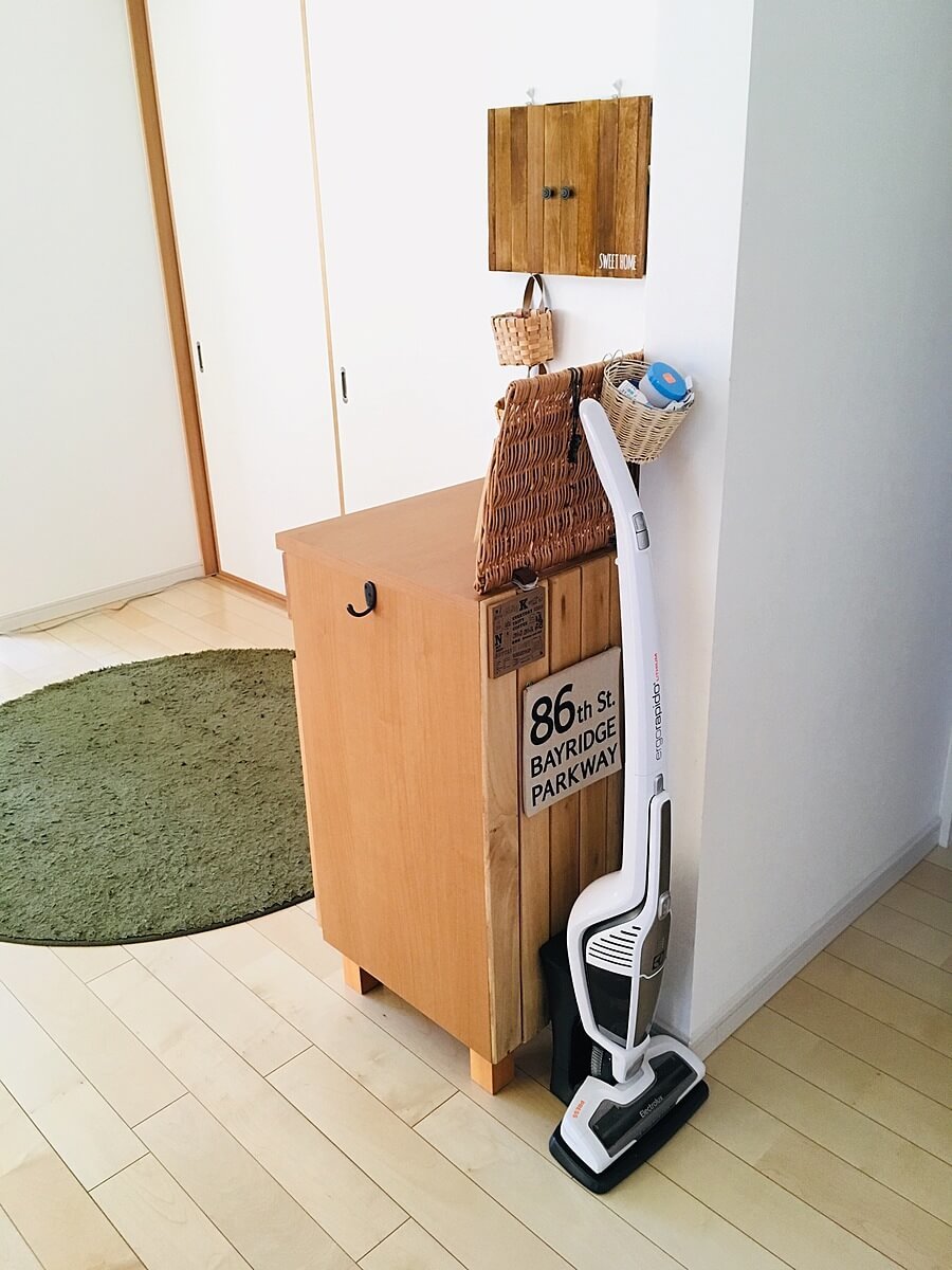 掃除機は、ダイニングにハンディータイプを立てて設置。
