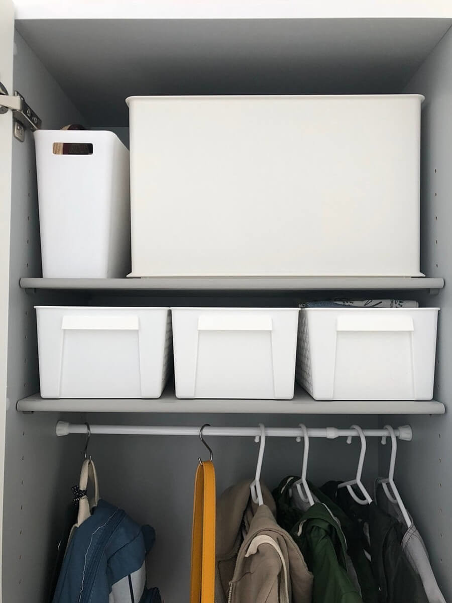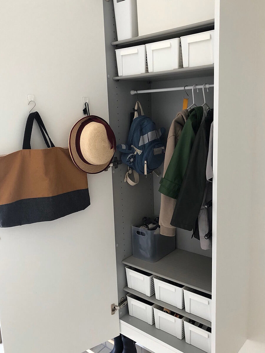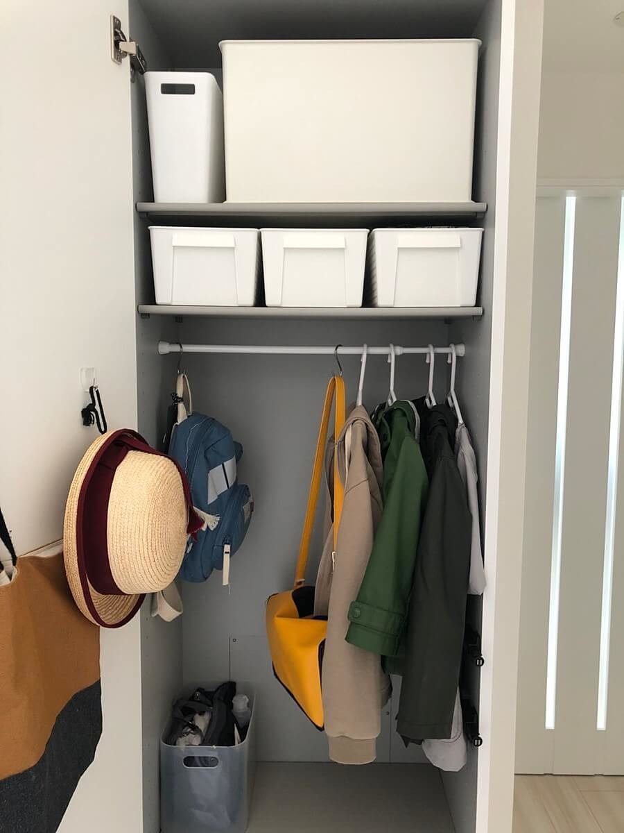 棚を撤去してつっぱり棒導入!モノが増えてもスッキリ玄関収納術