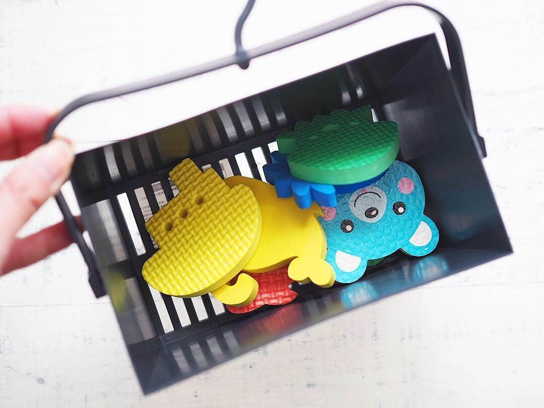 シャンプーやボディソープなどのボトル、掃除用品、子どものおもちゃなど収納しておけば、簡単に水切りできますよ。