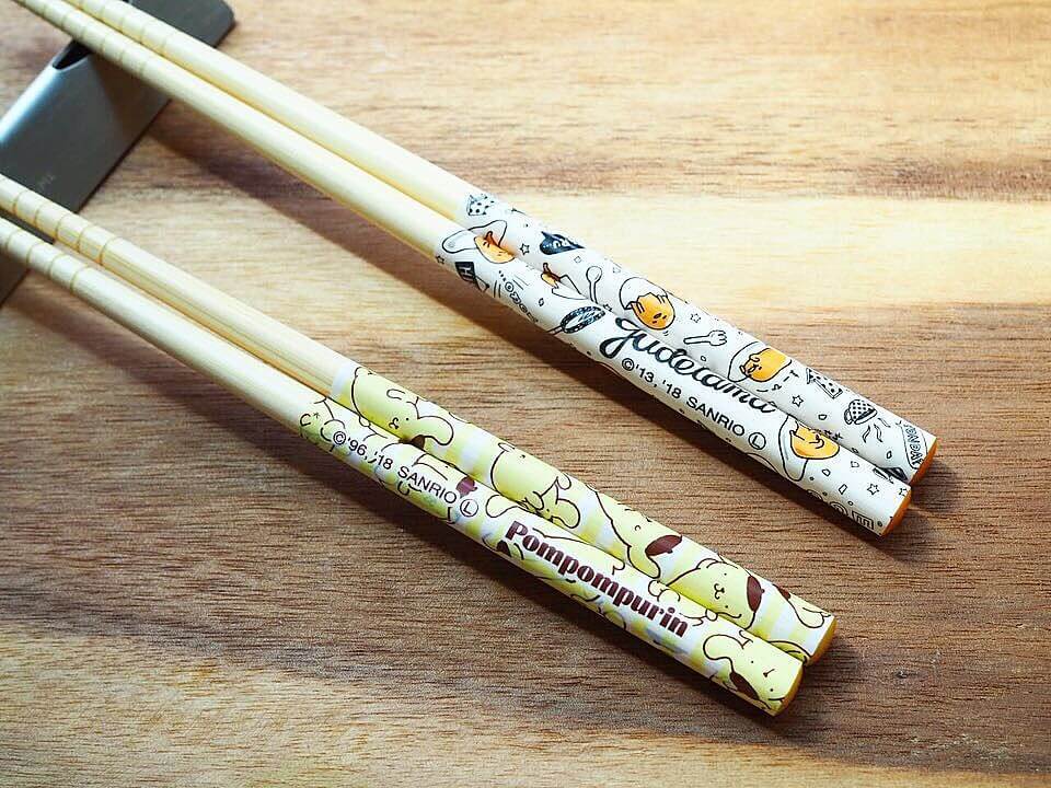 最後にご紹介するのは、人気のサンリオキャラクター「ぐでたま」と「ポムポムプリン」がプリントされた竹箸です。