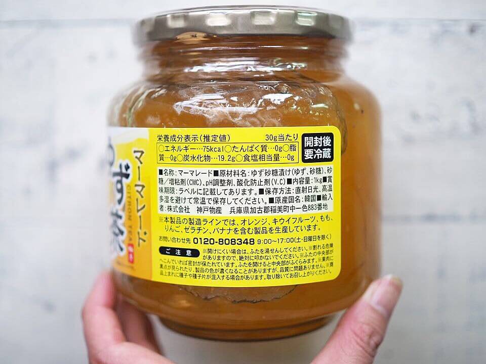 こちらは業務スーパーで販売されている瓶入りの「ゆず茶」です。