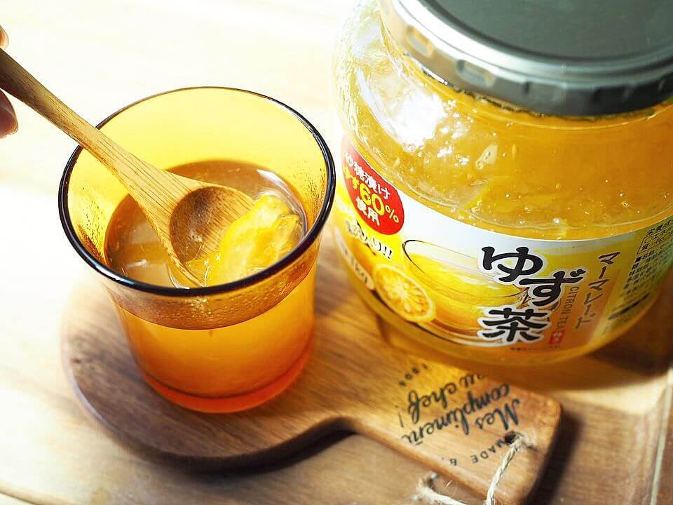 喉のケアや風邪予防に「ゆず茶」ボトルを冷蔵庫に常備しておくのはいかがでしょうか。