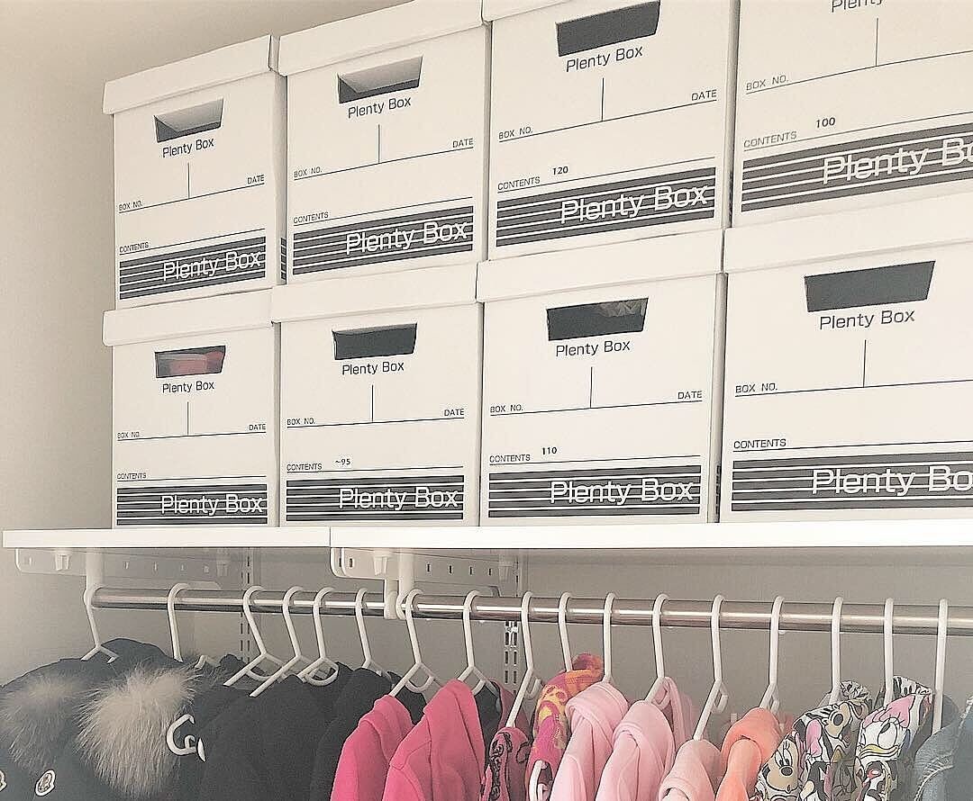 長女から二女へのお下がりなども、箱ごとにサイズ別でラベリングしておくと、とても探しやすく衣替えもしやすいです。