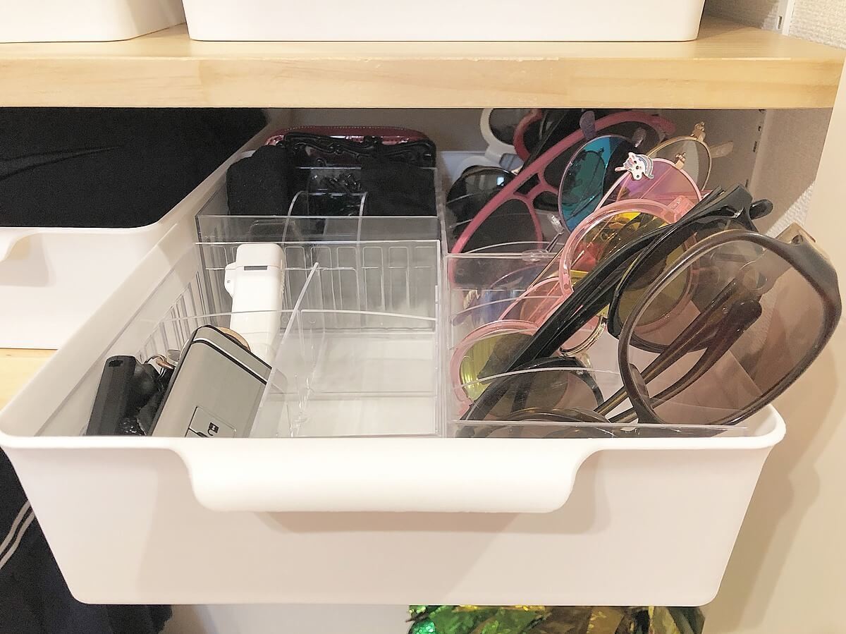 セリアの収納グッズのなかでも、中身をしっかり隠せる「白」で統一するのが、スッキリ収納のコツ!