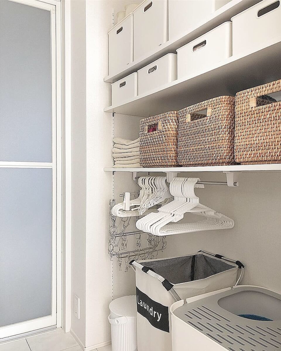 まずは、ランドリーのハンガー収納に!