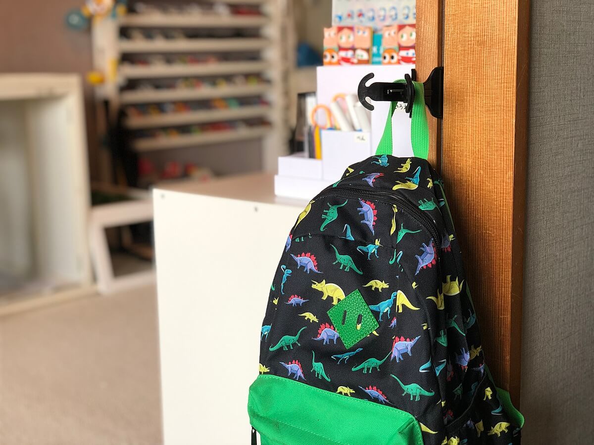 また、普段はふすまを開け閉めしないので、クリップを挟んで子どものリュックを掛けています。