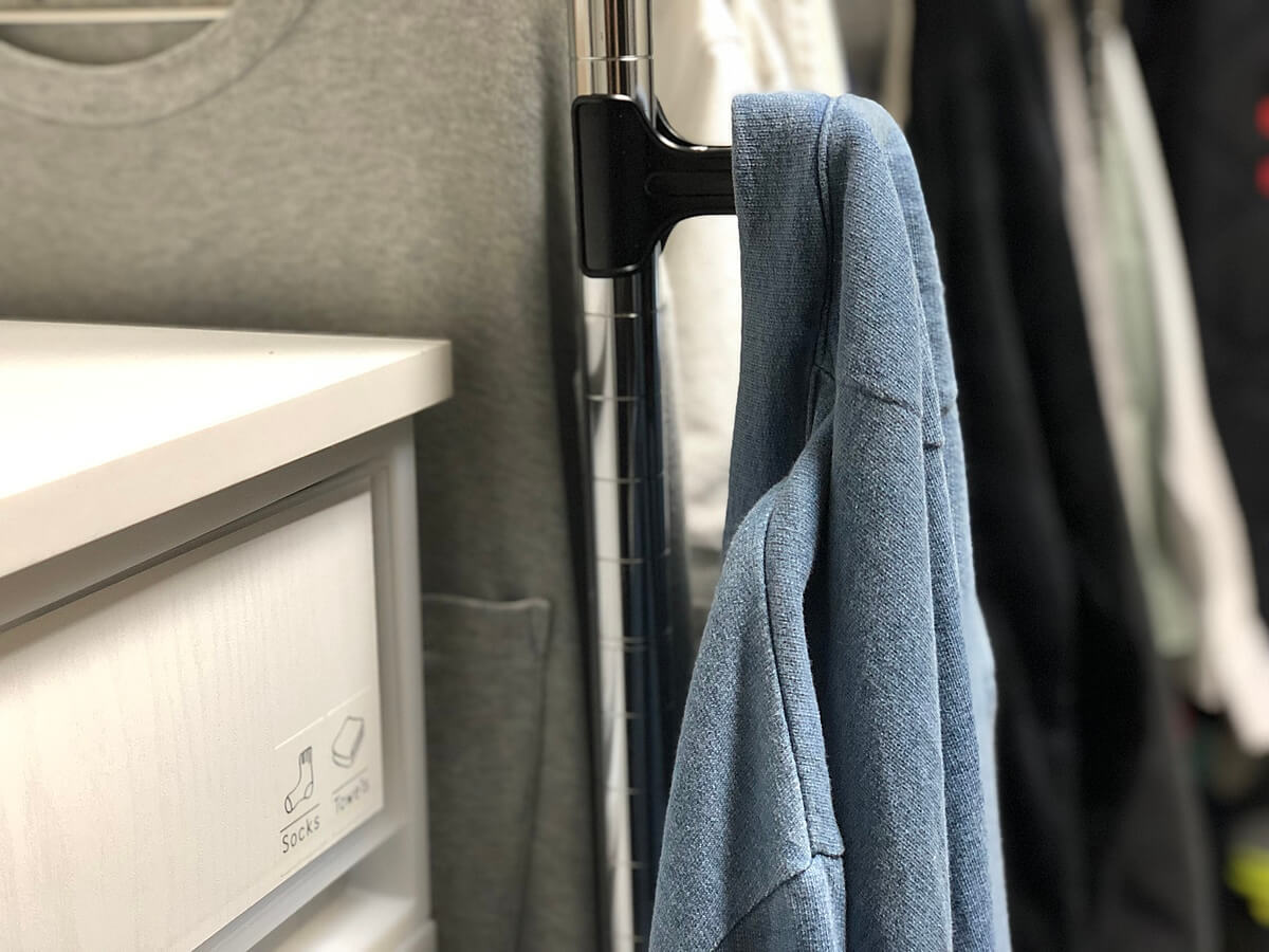 洋服の一時掛けスペースも、クリップをつけるだけで簡単に掛けられるので便利です!