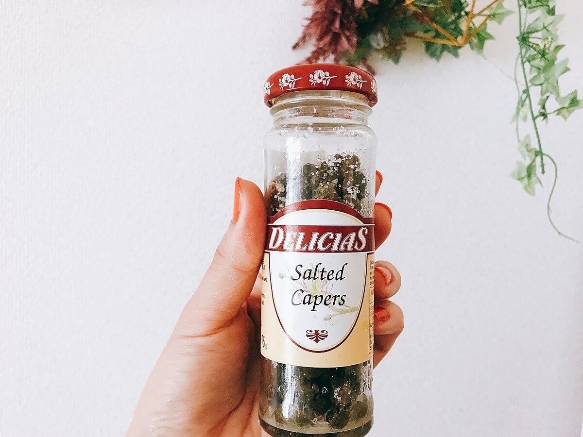 ケーパー!あまり聞きなれない物かもしれませんが、美味しいパスタ屋さんのパスタに高確率で入っているこれ、塩味がきいた調味料なんですがサーモンやサーディンのパスタにとてもあうんです!鯖缶プラスもアリかもです!試してみてください♪
