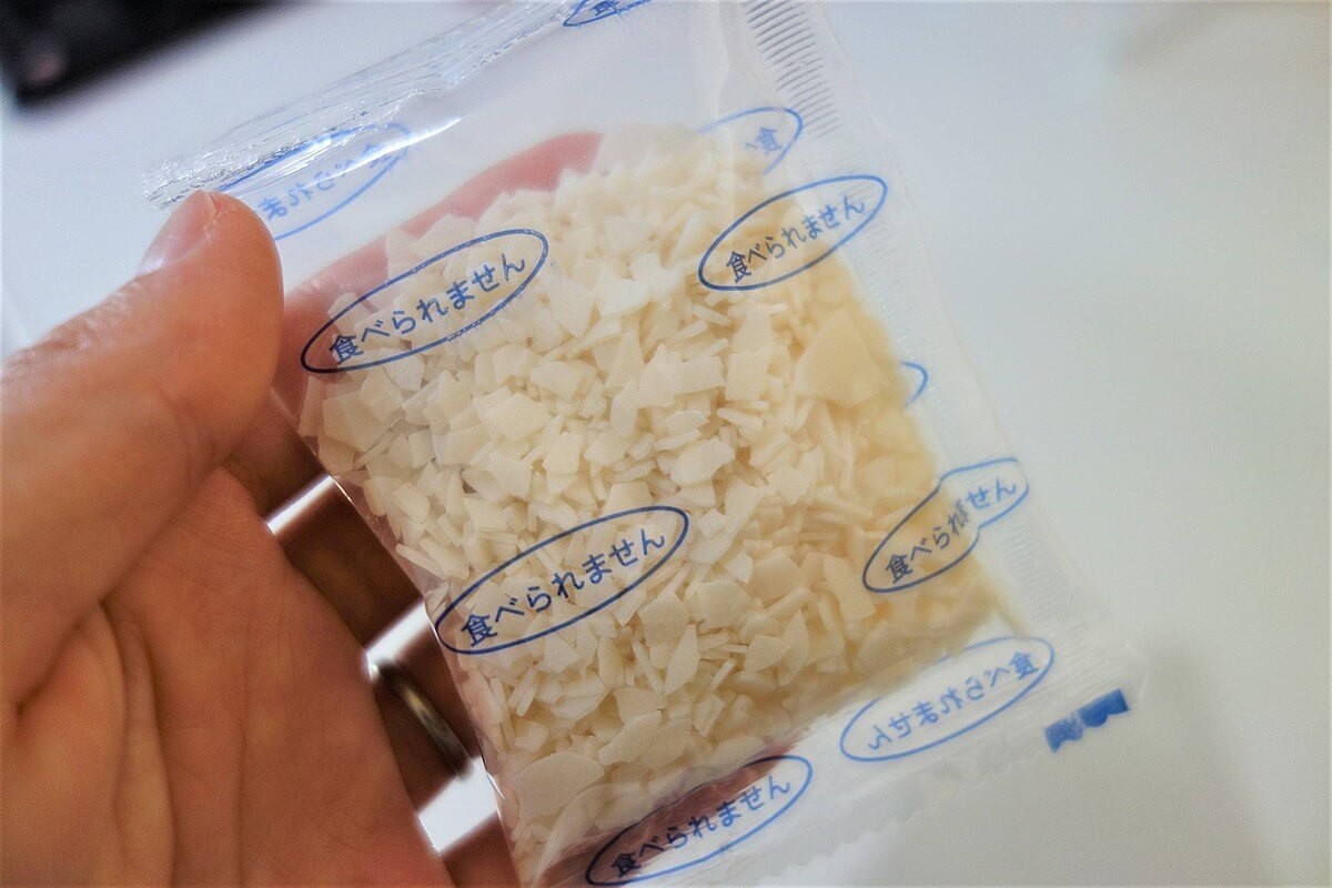 箱を開封すると、個包装された天ぷら油凝固剤が5つ入っていました。