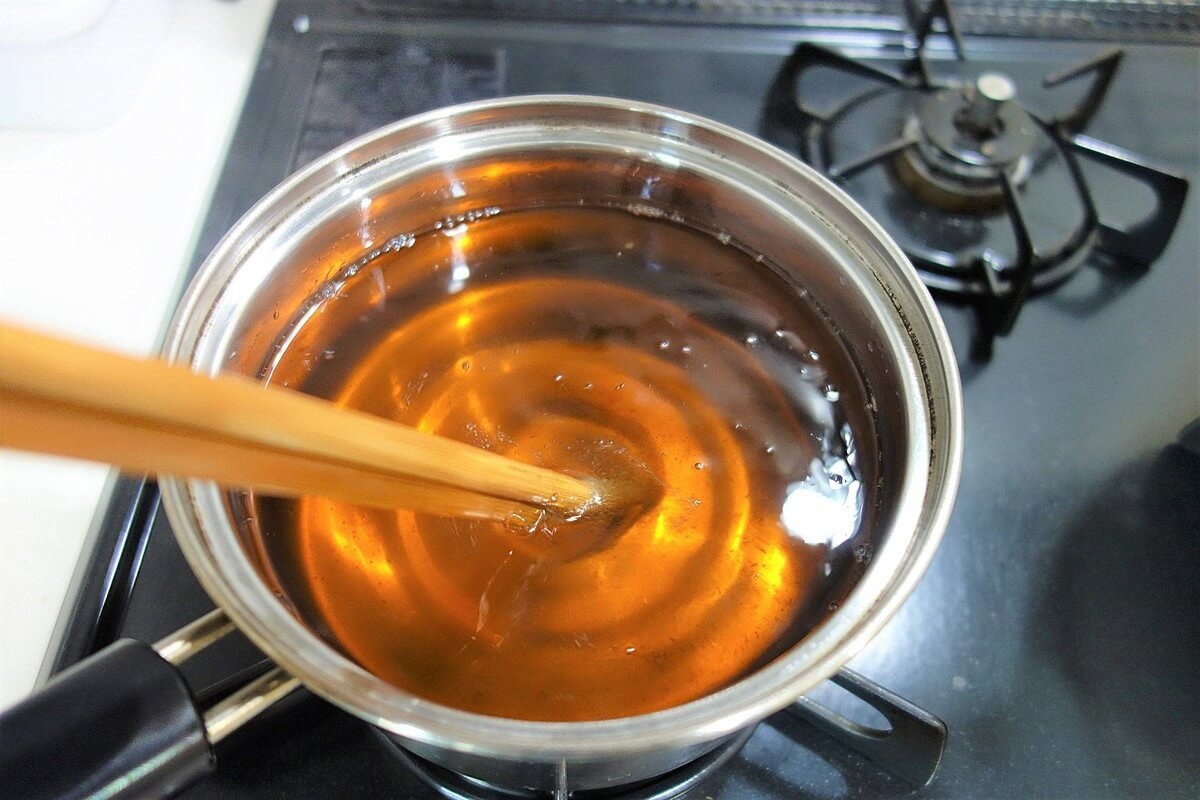 油が温まったら火を止めて、天ぷら油凝固剤を入れます。