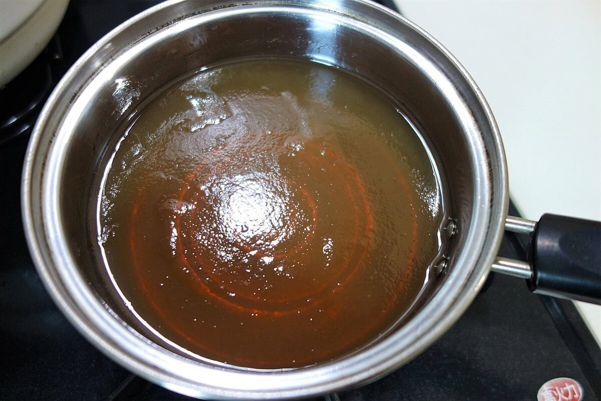 約1時間後の鍋の様子です。油がしっかり固まっているのが分かります。