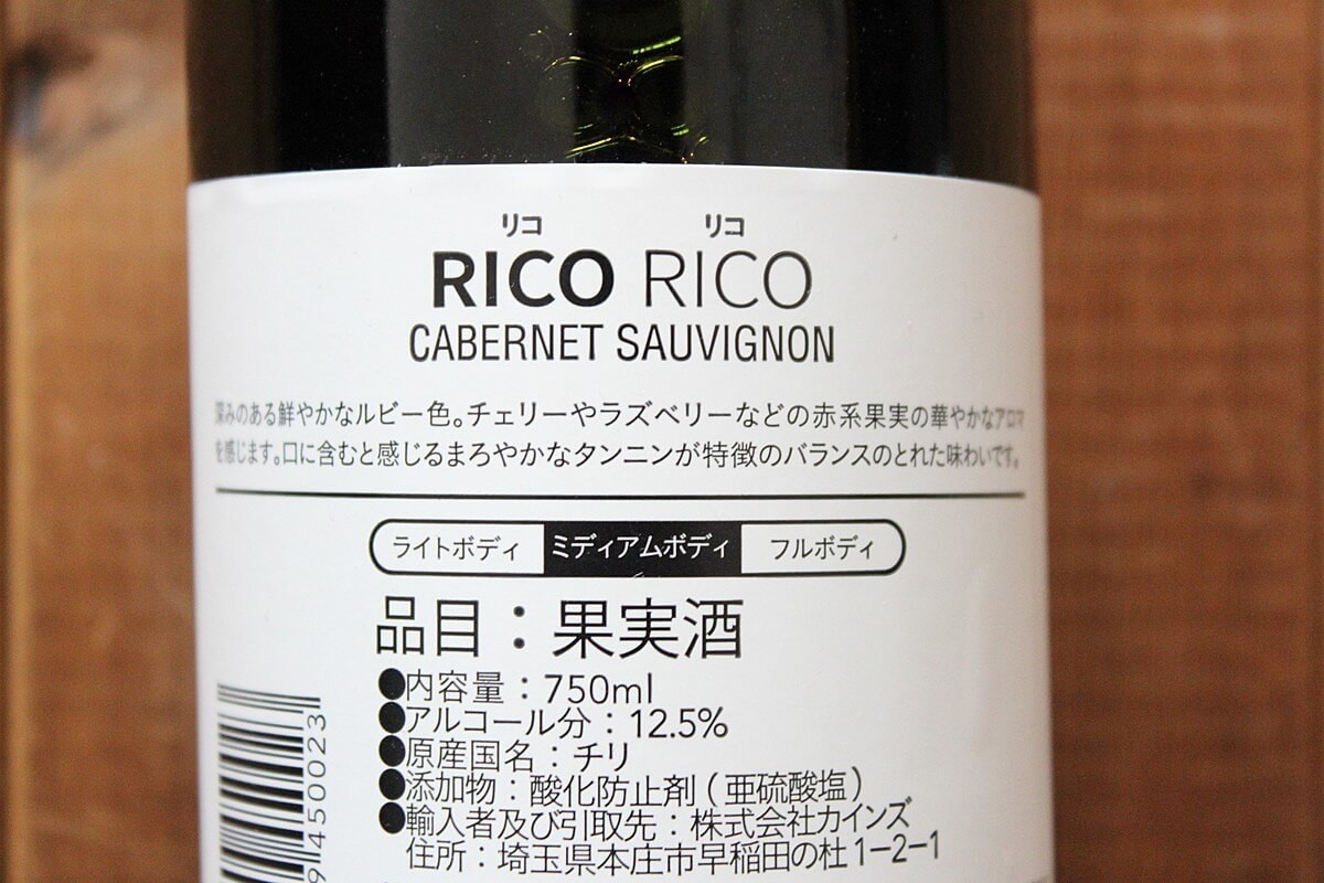 「カインズオリジナル 赤ワイン RICO RICO チリ産 カべルネソーヴィニヨン」