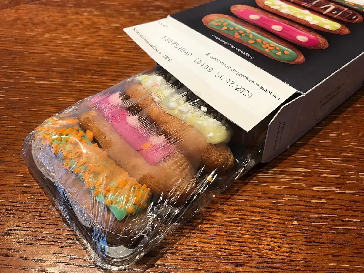 何を買おうか悩みながら店内をウロウロしていた私の目に留まったのは、デザートコーナー。 タルトやカヌレなど、大好きなフランスのお菓子も魅力的でしたが、私が選んだのはミニエクレア。