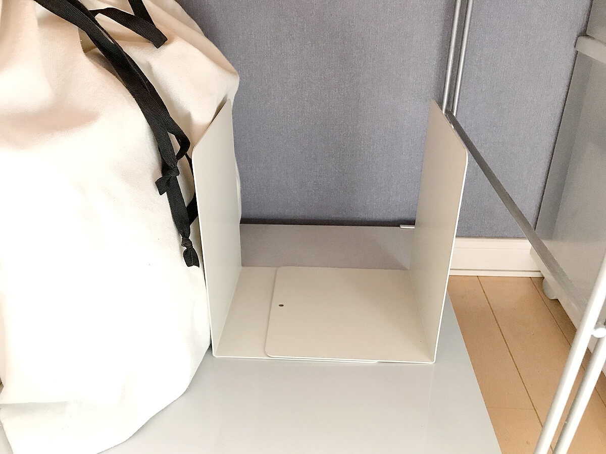 布のバッグをたたんで立ててもいいですし、マチのない薄いバッグなら2〜3個一緒に立てることもできます。